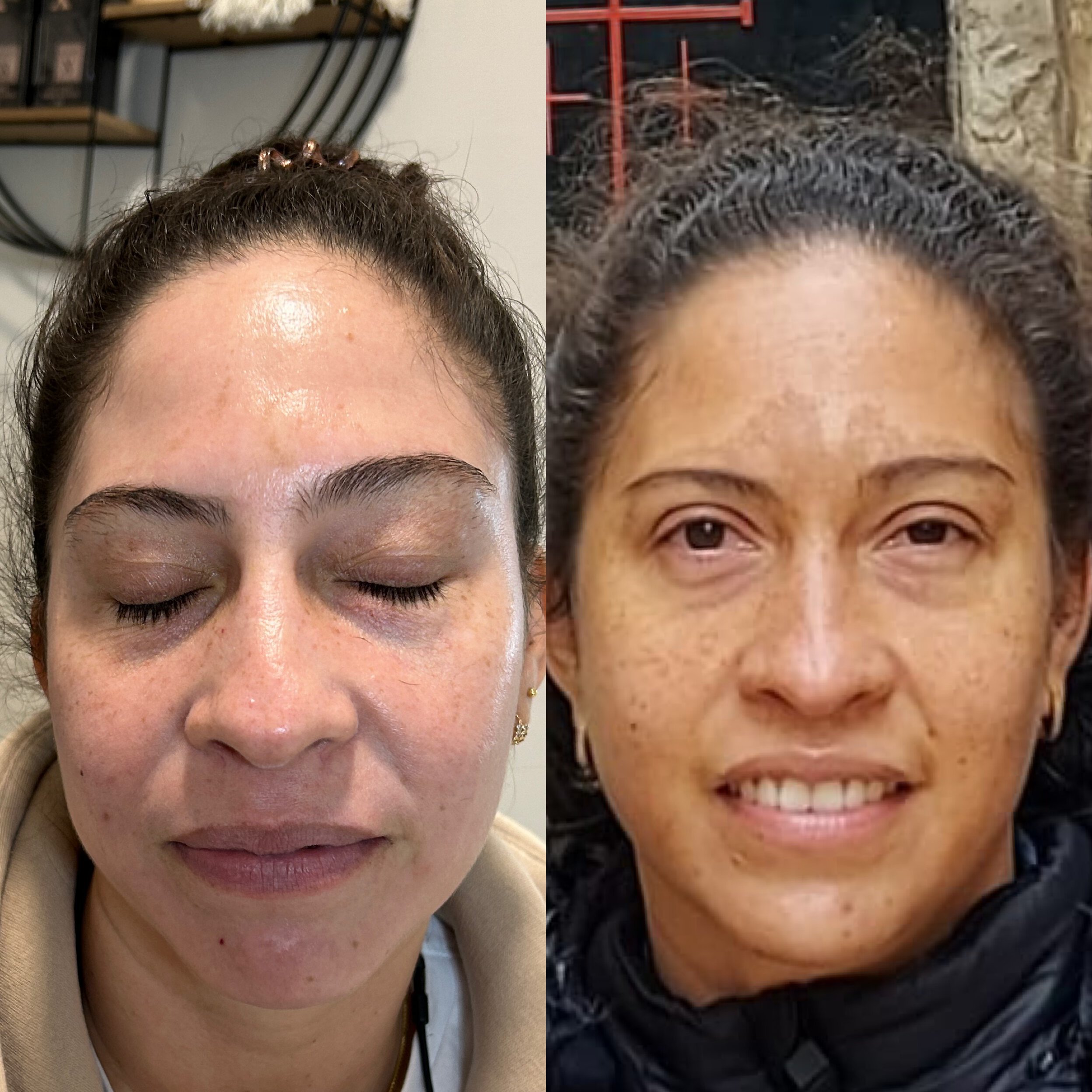 צלקות שנשארות אחרי אקנה עלולות לגרום לעור להיראות לא חלק – אבל אפשר לשנות את זה. אני משלבת מזותרפיה שמעודדת בנייה מחודשת של קולגן, פוטותרפיה שממריצה את התחדשות התאים, ו-פילינגים עמוקים שמחליקים את המרקם. השילוב מחזיר לעור מראה אחיד וחלק יותר.